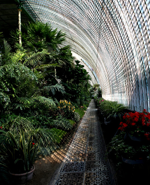 The semi iron and glass dome which surrounds the inner space of the greenhouse